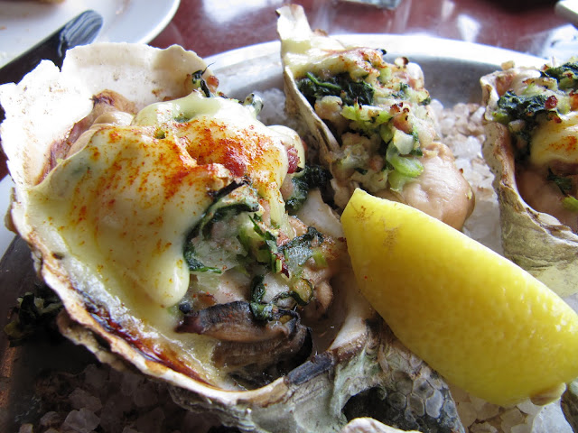 The Oysters Rockefeller were even better. The recipe marries the flavors of bacon, spinach, and Pernod, all topped with a creamy and savory hollandaise sauce. I preferred this one over the Blue Cheese Oysters. I usually don't get baked oysters because I feel like most preparations kill the freshness of the oyster, but these were exceptional.