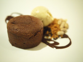 Last up to bat was the heaviest item on the entire menu: Chocolate Coulant with Toffee and Peanut Butter Ice Cream. Despite its weight, we did our best to eat as much as we could. The chocolate coulant oozed with warm chocolate with the first slice, and the chocolate mixed together with the slowly melting peanut butter ice cream.